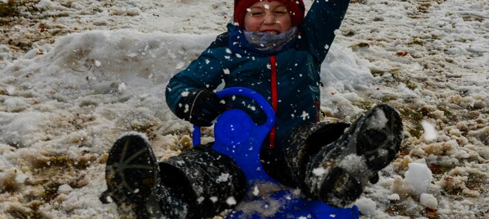 Die Rede ist (natürlich) vom Schlittenfahren an der eher grünen als weißen Pfulbwand