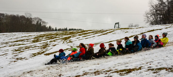 Das Schlittenfahren an der Pfulbwand, bei dem alle einen riesen Spaß hatten, blieb nicht das einzige Erlebnis an diesem Wochenende. Neben Schneeballschlachten wurden auch Murmelbanen gebaut und Bannemann gespielt.