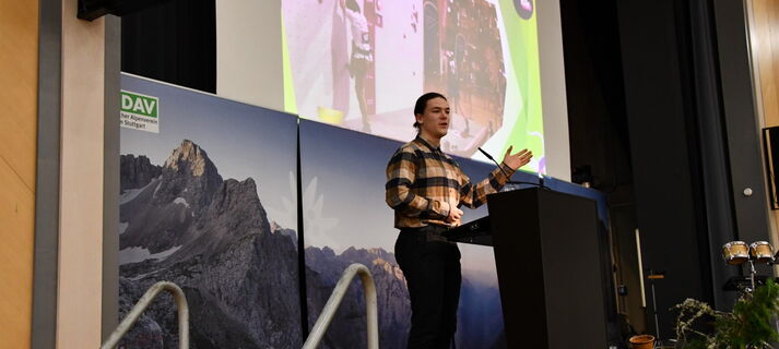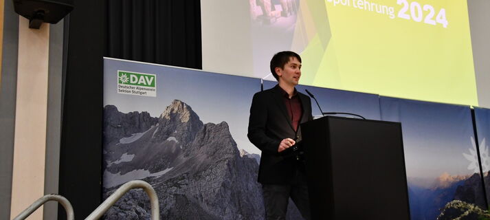 Sportler*innen der Sektion Stuttgart legen sich jedes Jahr unermüdlich für persönliche Erfolge im Klettersport ins Zeug und regelmäßig wird dies mit Erfolgen bei Wettkämpfen und am Fels belohnt. Alle 2 Jahre ehrt die DAV Sektion Stuttgart diese Erfolge auf der Sportehrung im Anschluss an die Jubilarehrung. Am 16.11.2024 war es wieder so weit. Im Großen Festsaal des SSB-Zentrums, gegenüber unserer nur all zu gut bekannten Trainingsstätte Waldau, wurden die erfolgreichsten Sporter*innen geehrt. Dabei wurden sie nicht nur für die Ergebnisse selbst, sondern auch für den damit verbundenen Einsatz im Klettersport, ihr unermüdliches Training und ihr Kommittent zur Teilnahme an Wettkämpfen in ganz Deutschland, Europa und der Welt geehrt.